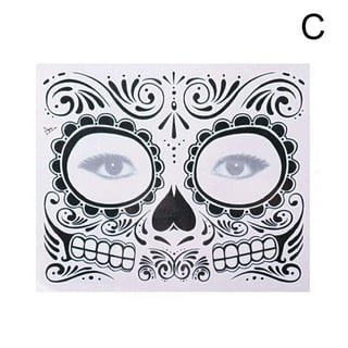 Day Of The Dead Face Temporary Tattoos Transfer Mask Halloween Sugar Skull Black Ebay