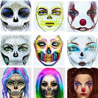 Yuffoo Day Of The Dead Face Tattoos Temporary Face Sticker Kit Halloween Decorations Sugar Skull Costume Makeup Decor For Masquerade And Parties